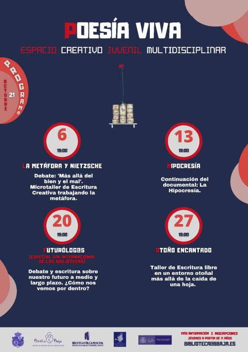 La Biblioteca Pública Municipal "Mauro Fernández Santos" (San Antonio) a programado para el mes de octubre los nuevos talleres de los diversos proyectos de dinamización y creación literaria. Es necesaria la inscripción previa.