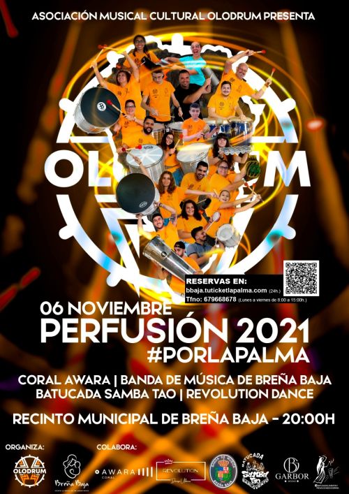 La asociación cultural musical “Olodrum” y la Concejalía de Cultura del Ayuntamiento de Breña Baja presentan la tercera edicción del Perfusión Breña Baja 2021 #PORLAPALMA para el sábado 6 de noviembre en el Recinto Municipal de San José a partir de las 20 hs.