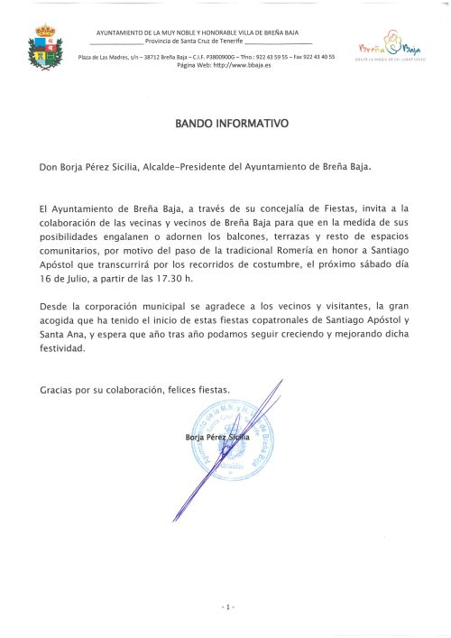 Por tal motivo, el Ayuntamiento de Breña Baja invita a los vecinos a engalanar sus viviendas con ornamentación típica.