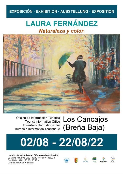 Del 2 al 22 de agosto la Oficina de Información Turística de Los Cancajos acoge la exposición de pintura “Naturaleza y Color” de Laura Fernández, en los horarios de apertura de la oficina. Colaboran Ayuntamiento de Breña Baja y Cit Tedote, entre otras entidades.