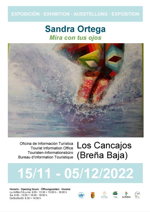Del 15 de noviembre al 5 de diciembre Sandra Ortega muestra la exposición de pintura al óleo “Mira con tus ojos” en la Oficina de Turismo de Los Cancajos con los horarios de apertura de la oficina. Colabora Ayuntamiento de Breña Baja, CIT Tedote, entre otras entidades.