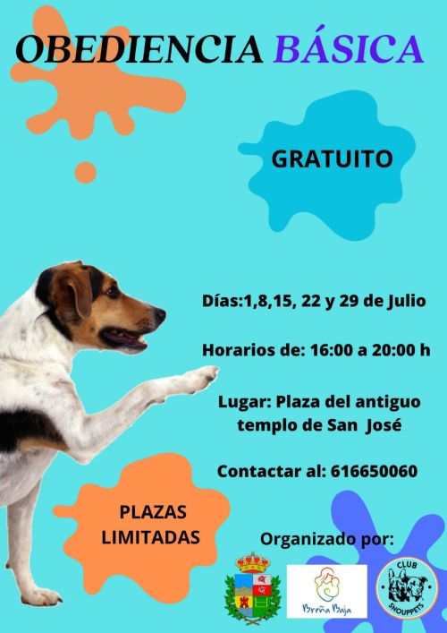 Todos los sábados del mes de julio en el Recinto Municipal de San José tendrá lugar un Curso sobre “Obediencia Básica” canina por parte del Club Snouppets y el Ayuntamiento de Breña Baja. Se lleva a cabo en los horario de 16 a 20 hs.