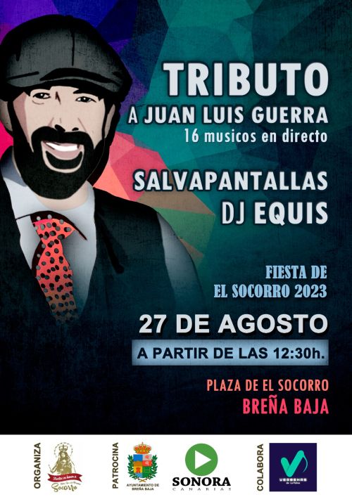 El domingo 27 de agosto, desde las 12.30 hs, la Plaza del Socorro contara con un gran tributo al artista dominicano Juan Luis Guerra, la actuación de la banda grancanaria “Los Salvapantallas” y al dj palmero “Equis”, en el marco de las Fiestas en honor a Nuestra Señora del Perpetuo Socorro.