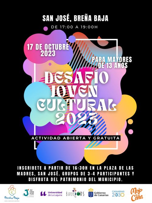 El Ayuntamiento de Breña Baja y la Asociación Mojo de Caña organizan una actividad novedosa e interesante para aquellos jóvenes que quieran participar del “Desafío Joven Cultural 2023” que tendrá lugar en el barrio de San José el martes 17 de octubre de 17 a 19 hs. Cuenta con la colaboración de varias entidades.