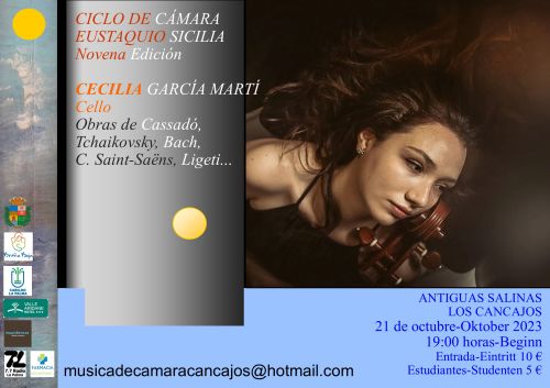 El cuarto concierto del Ciclo de Cámara “Eustaquio Sicilia” en su Novena Edición, tendrá lugar el sábado 21 de octubre en Las Antiguas Salinas de Los Cancajos a las 19 hs, con la actuación de Cecilia García Martí al violonchelo, natural de Valencia.