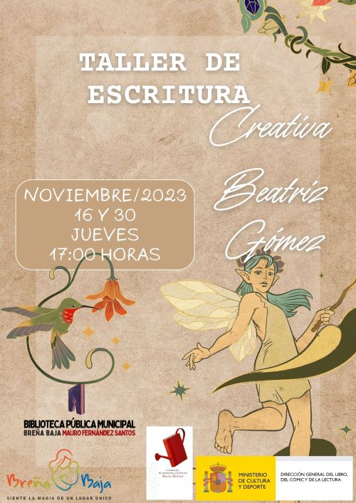 - “Escritura Creativa” (13-18 años), para los días jueves 16 y 30 de noviembre a las 17 hs, por parte de Beatriz Gómez. Fomentando la lectura y escritura entre los mas jóvenes, conociendo herramientas que nos permitan expandir nuestra mente y que nos ayuden a crear historias de una manera divertida y dinámica, rompiendo con todos los esquemas tradicionales. A través de diversas estrategias desarrollaremos la creatividad en su máxima extensión, exteriorizando la imaginación, expresando nuestras ideas y compartiendo nuestra emociones.