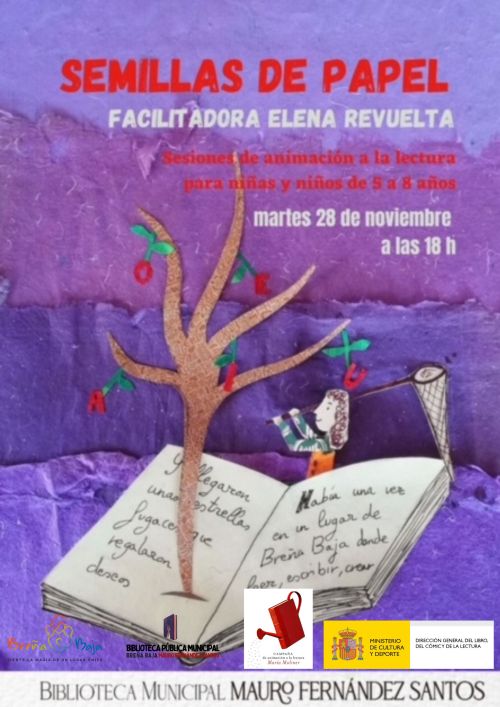 - “Semillas de Papel” (5-8 años), para el miércoles 28 de noviembre a las 18 hs y facilitado y dinamizado por Elena Revuelta. Semillas de letras, prelibros, lectura y arte.