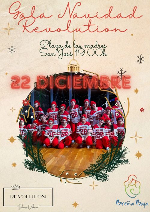 El viernes 22 de diciembre a las 19 hs, en la Plaza de Las Madres de San José, Revolution Dance organiza la “Gala de Navidad 2023”. Con la colaboración del Ayuntamiento de Breña Baja y dentro del programa navideño de este municipio.