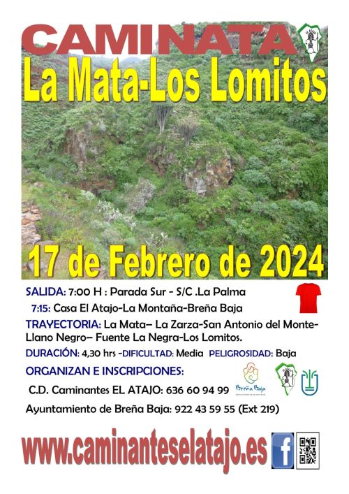 El sábado 17 de febrero, el C. D. de Caminantes "El Atajo" y la Concejalía de Deportes del Ayuntamiento de Breña Baja organizan, dentro del Programa de Senderismo de Breña Baja, la caminata nº 861 "La Mata - Los Lomitos", en la Villa de Garafía.