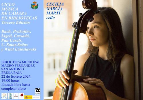El jueves 22 de febrero, 19 hs, primer concierto de la tercera edición del Ciclo “Música de Cámara en Bibliotecas”, en la Biblioteca Municipal “Mauro Fernández Santos”, en San Antonio. Con Cecilia García Martí, al violonchelo. Entrada libre hasta completar aforo.