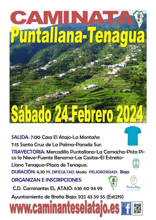 El sábado 24 de febrero, el C. D. de Caminantes "El Atajo" y la Concejalía de Deportes del Ayuntamiento de Breña Baja organizan, dentro del Programa de Senderismo de Breña Baja, la caminata nº 861 "Puntallana - Tenagua", con salida desde el Mercadillo de Puntallana.