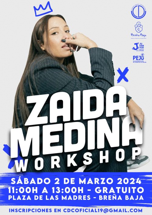El sábado 2 de Marzo Canary Dance Connetion organiza un Workshop con Zaida Medina basado en la danza urbana. El taller tendrá lugar entre las 11.00 y las 13.00 hs en la Plaza de Las Madres de San José. Cuenta con la colaboración del Ayuntamiento de Breña Baja y el área de Juventud del Cabildo Insular de La Palma.