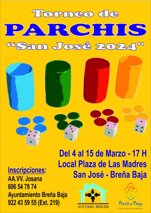 Ya están abiertas las inscripciones para los torneos de Parchis y Rey Mala con motivo de la Fiesta de San José a mediados del mes de marzo y que tendrá lugar en el local de la Plaza de Las Madres de San José.