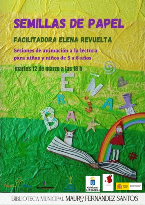 - “Semillas de Papel” (5-8 años), el martes 12 de marzo a las 18 hs y facilitado y dinamizado por Elena Revuelta. Semillas de letras, prelibros, lectura y arte.