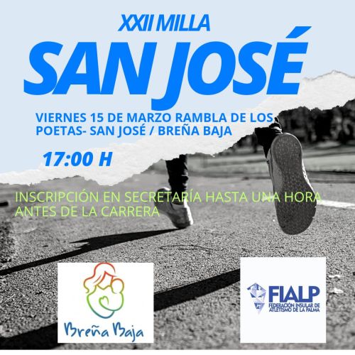 - Viernes 15 de Marzo, 17,00 h, XXII MILLA URBANA “San José 2024”. Inscripciones una hora antes.