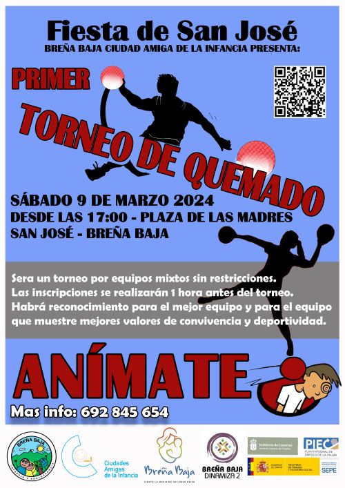 - Sábado 9 de Marzo, 17,00 h, Primer Torneo del juego “EL QUEMADO”. Inscripciones por equipo una hora antes (mayor información contactar al tlfo: 692 84 56 54).