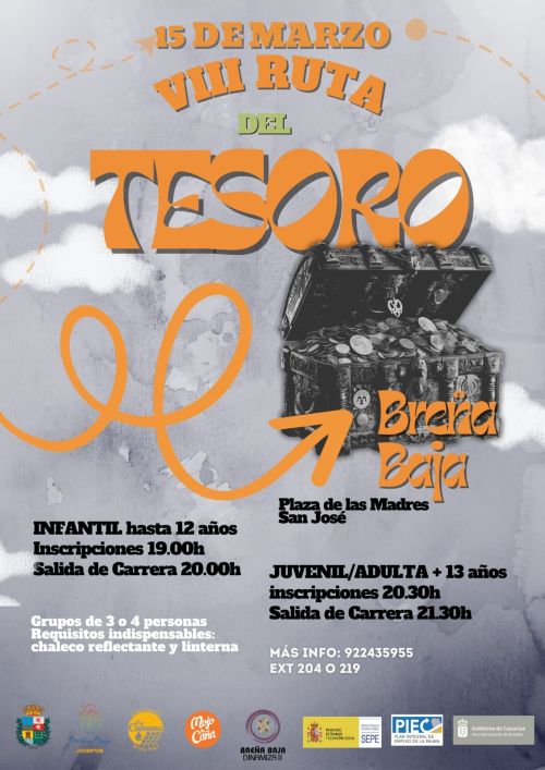 - Viernes 15 de Marzo, 20,00 h, VIII RUTA DEL TESORO (Infantil), hasta 12 años, por el grupo juvenil “La Colmena” y PFE “Breña Baja Dinamiza II”. Inscripciones una hora antes.