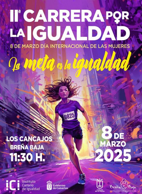 Con el lema “La meta es la igualdad” el sábado 8 de marzo en Los Cancajos a partir de las 11.30 hs tendrá lugar la II Carrera por la Igualdad que organiza el Cabildo Insular de La Palma y respalda el Ayuntamiento de Breña Baja, con la colaboración del Instituto Canario de Igualdad del Gobierno de Canarias.