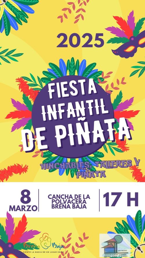El sábado 8 de marzo, 17.00 h, se celebra la tradicional Fiesta Infantil de “Piñata” en la Cancha Polideportiva de La Polvacera. Un año más se pretende que los niños y las niñas sean los protagonistas de una tarde de diversión y piñata carnavalesca pensada especialmente para ellos.