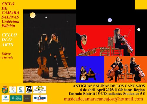El domingo 6 de abril, a las 11.30 hs, es la nueva fecha del séptimo concierto de la undécima edición del Ciclo de Cámara Salinas en Las Salinas de Los Cancajos, con Cello Dúo Arts y su concierto “Volver a la raíz”, por primera vez en La Palma.