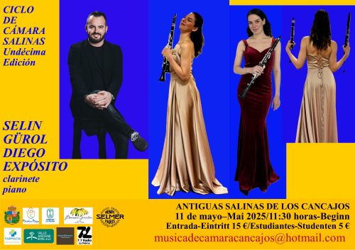 El domingo 11 de mayo a las 11.30 hs, tendrá lugar el noveno concierto de la Undécima Edición del Ciclo de Cámara “Salinas” en Las Antiguas Salinas de Los Cancajos, con la actuación de Selin Gürol y Diego Expósito al clarinete y al piano. Un dúo que se estrena en Las Salinas.