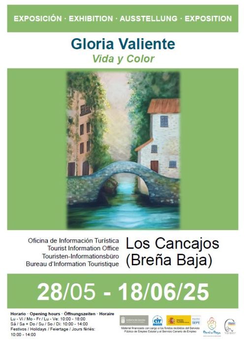 La Oficina de Turismo de Los Cancajos del 28 de mayo al 18 de junio acoge la exposición de pintura “Vida y Color” de Gloria Valiente en los horarios habituales de la oficina. Con la colaboración del Ayuntamiento de Breña Baja y el CIT Tedote, entre otras entidades.