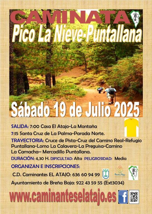 El sábado 19 de julio, el C. D. de Caminantes "El Atajo" y la Concejalía de Deportes del Ayuntamiento de Breña Baja organizan, dentro del Programa de Senderismo de Breña Baja, la caminata nº 939 "Pico de La Nieve - Puntallana".