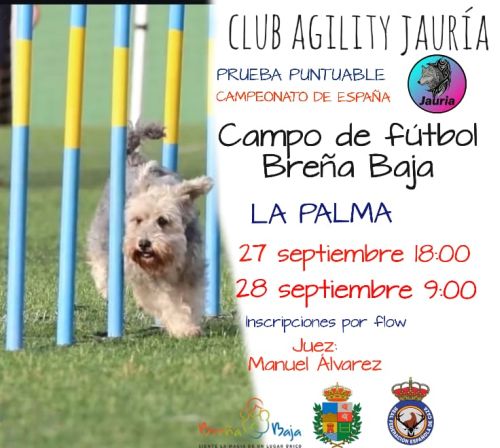 El fin de semana del 27 y 28 de septiembre en el Estadio Municipal de Breña Baja (San José) una prueba puntuable Campeonato de España (Agility). Arranca el sábado 27 a las 18 hs y continuara el domingo 28 a las 9 hs y la entrega de trofeos esta prevista para las 13 hs.