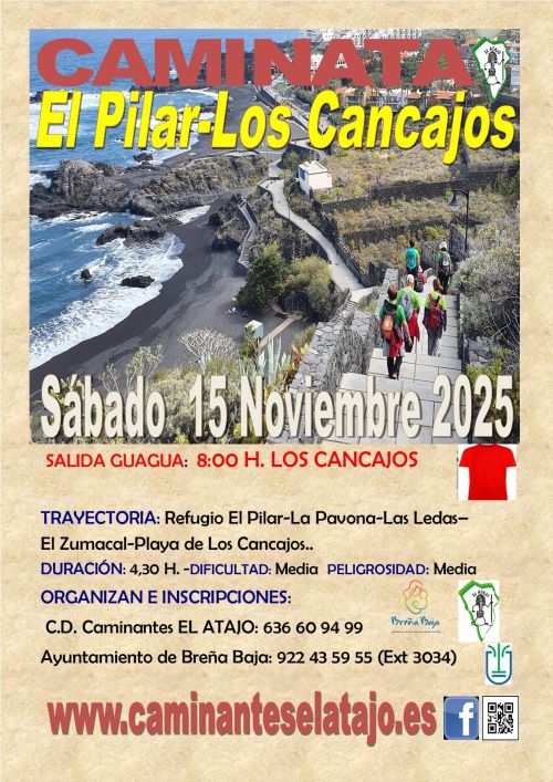 El sábado 15 de noviembre, el C. D. de Caminantes "El Atajo" y la Concejalía de Deportes del Ayuntamiento de Breña Baja organizan, dentro del Programa de Senderismo de Breña Baja, la caminata nº 963 "El Pilar - Los Cancajos".