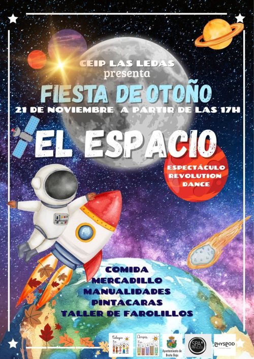 El viernes 21 de noviembre a las 17 h. el Ceip Las Ledas y Ampa Ledasapa organizan su onceava fiesta de otoño “El Espacio” en las instalaciones del colegio, ubicado en el barrio de La Montaña (pasando Finca Amado).