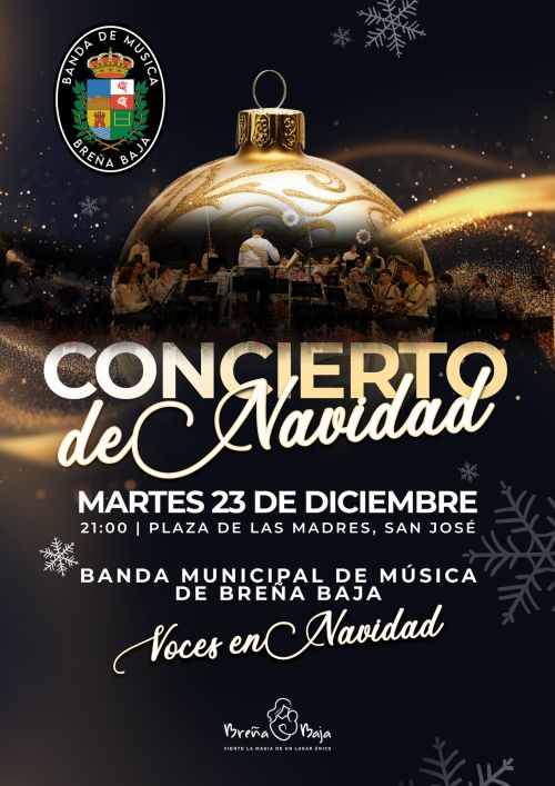 El martes 23 de diciembre a las 21.00 hs la Banda Municipal de Música de Breña Baja ofrecerá su tradicional Concierto “Voces en Navidad” en la Plaza de Las Madres de San José, en el marco del programa navideño del municipio que viene promocionando el Ayuntamiento de Breña Baja.