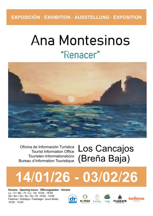 Del 14 de enero al 3 de febrero la Oficina de Información Turística de Los Cancajos acoge la Exposición de pintura al óleo “Renacer" de Ana Montesinos en los horarios de apertura de la oficina. Con la colaboración del Ayuntamiento de Breña Baja, el Cit Tedote, entre otras entidades.