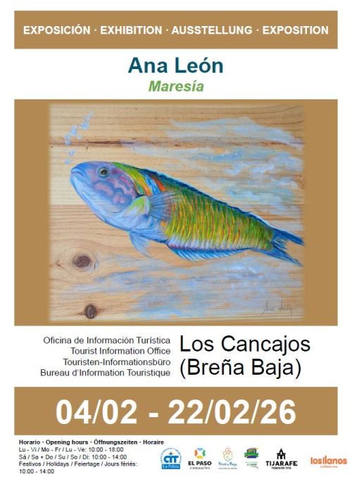 Del 4 al 22 de febrero la Oficina de Información Turística de Los Cancajos acoge la Exposición de pintura al óleo "Maresía” de Ana Margarita León Pérez en los horarios de apertura de la oficina. Con la colaboración del Ayuntamiento de Breña Baja y el Cit Tedote, entre otras entidades.