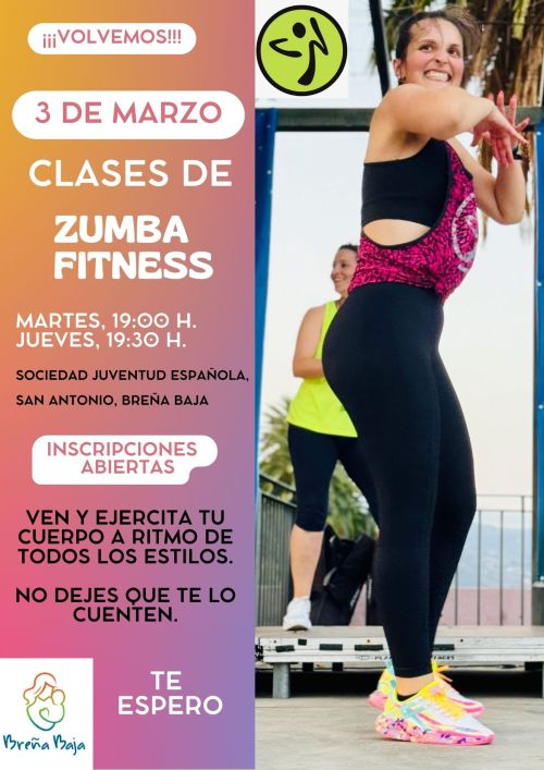 Tras algunos meses de espera, para el mes de marzo vuelven las clases de Zumba Fitness a la Sociedad Juventud Española de San Antonio, a cargo de Marjorie Lorenzo. Cuenta con la colaboración del Ayuntamiento de Breña Baja.