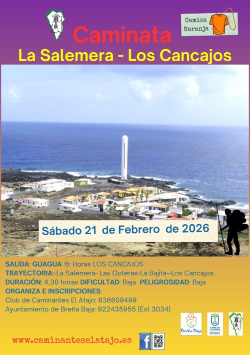 El sábado 21 de febrero, el C. D. de Caminantes "El Atajo" y la Concejalía de Deportes del Ayuntamiento de Breña Baja organizan, dentro del Programa de Senderismo de Breña Baja, la caminata nº 977: "La Salemera - Los Cancajos".