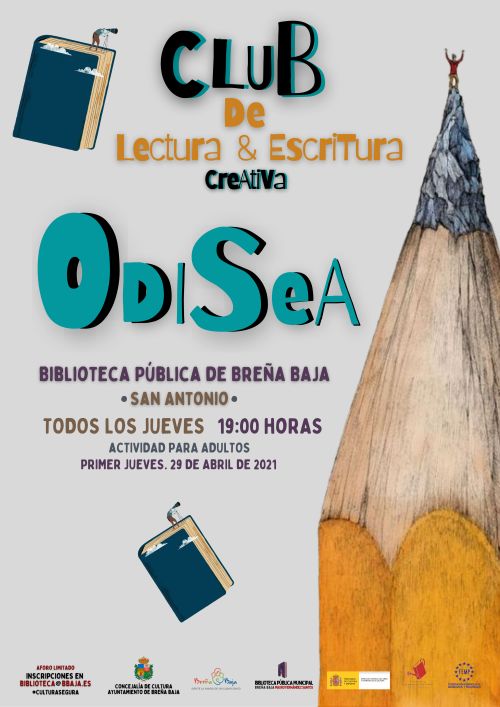 El jueves 29 de abril, a las 19 hs, tendrá lugar el primer jueves del Club de lectura y escritura creativa “Odisea” de Breña Baja en la Biblioteca Pública Municipal "Mauro Fernández Santos" (San Antonio), promovido por la Concejalía de Cultura del Ayuntamiento de Breña Bajam y dirigido para adultos.