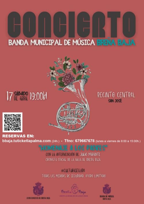 La Banda Municipal de Música de Breña Baja ofrecerá un Concierto “Homenaje a Los Padres” el sábado 17 de abril a las 19 hs en el Recinto Municipal de San José. Organiza el Ayuntamiento de Breña Baja y dentro de los actos por el Día de San José 2021.