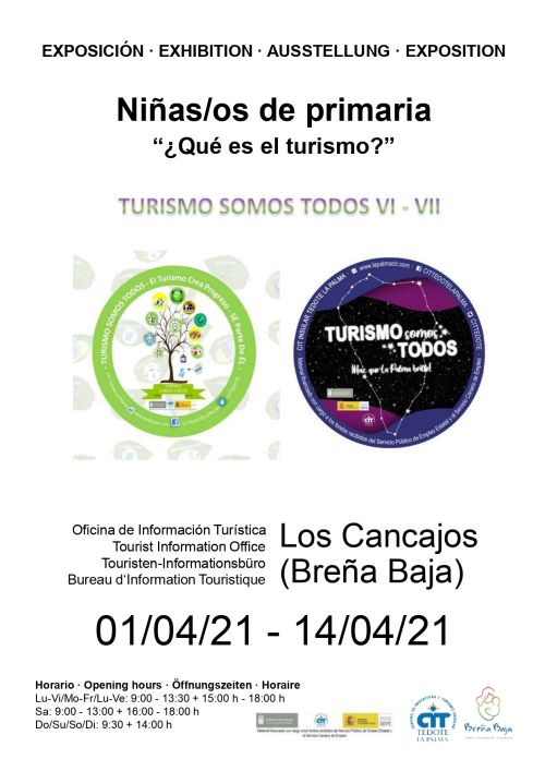 Del 1 al 14 de abril la Oficina de Información Turística de Los Cancajos acoge la Exposición “Niño/as de Primaria – ¿Que es el turismo?” de la campaña Turismo Somos Todos en los horarios de apertura de la oficina. Con la colaboración del Ayuntamiento de Breña Baja, el Cit Tedote, entre otras entidades.