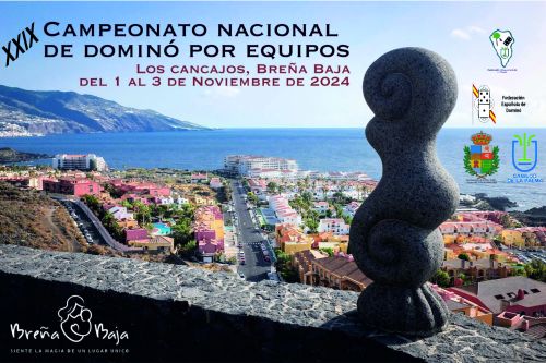 Con una participación de 16 equipos el fin de semana del 1 al 3 de noviembre tendrá lugar el XXIX Campeonato Nacional de Dominó por Equipos en el Hotel H10 Taburiente Playa de Los Cancajos con la representación de gran parte de las comunidades autónomas. Organiza la Federación Insular de La Palma y la Española de Dominó; y la colaboración del Ayuntamiento de Breña Baja y Cabildo Insular de La Palma.