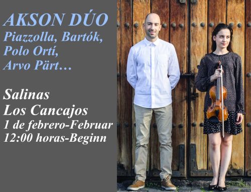 El domingo 1 de febrero, 12 hs, tendrá lugar el cuarto concierto de la Duodécima Edición del Ciclo de Cámara Salinas en las Antiguas Salinas de Los Cancajos con el dúo de piano y violin “Aksón Dúo”.