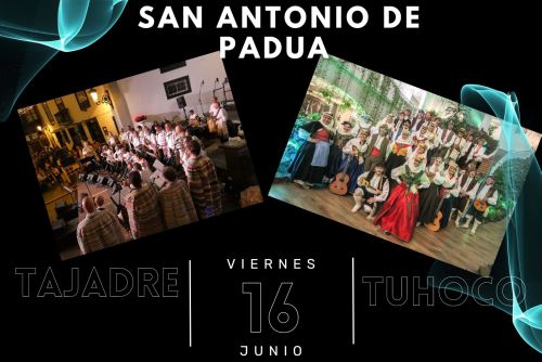 El viernes 16 de junio a las 21 hs. en el recinto de fiestas de San Antonio, tendrá lugar un festival folclórico con las actuaciones de las agrupaciones de Santa Cruz de La Palma, Tajadre y Tuhoco. Al finalizar seguiremos con música bailable a cargo del artista palmero “Zebensui Melián”. Entrada Libre.