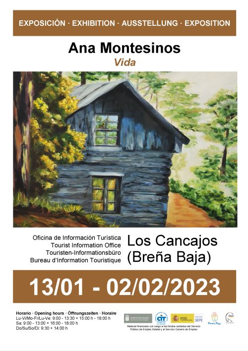 Del 13 de enero al 2 de febrero la Oficina de Información Turística de Los Cancajos acoge la Exposición de pintura al óleo "Vida" de Ana Montesinos en los horarios de apertura de la oficina. Con la colaboración del Ayuntamiento de Breña Baja, el Cit Tedote, entre otras entidades.