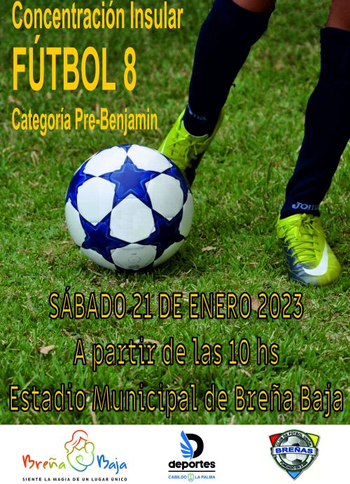 El sábado 21 de enero a partir de las 10 hs. en el Estadio Municipal de Breña Baja en San José tendrá lugar la Concentración Insular de Prebenjamines de Fútbol 8 que organizan la Consejería de Deportes del Cabildo Insular de La Palma, Ayuntamiento de Breña Baja y el Club Unión Breñas, y con la participación de varios puntos de promoción deportiva de la isla.