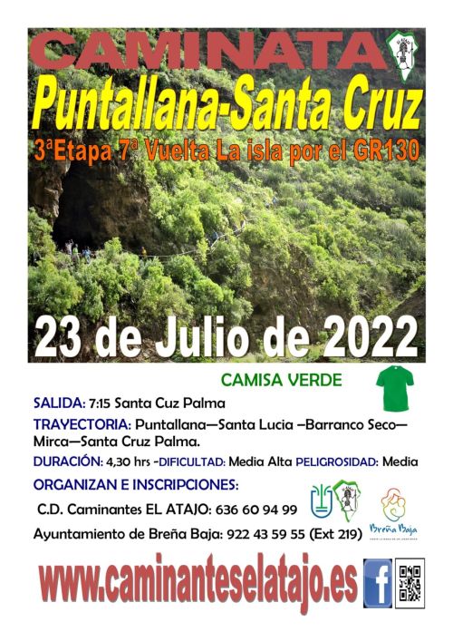 El sábado 23 de julio, el C. D. de Caminantes "El Atajo" y la Concejalía de Deportes del Ayuntamiento de Breña Baja organizan, dentro del Programa de Senderismo de Breña Baja, la caminata nº 766: "Puntallana - S/C de La Palma".