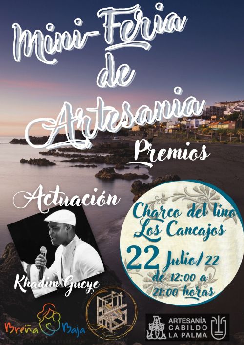 El viernes 22 de julio de 12 a 21 hs en el paseo del Charco del Lino (Los Cancajos) la Asociación de Artesanos "El Telar" de Breña Baja y la Concejalía de Artesanía del Ayuntamiento de Breña Baja organizan la Mini Feria de Artesanía del mes de Julio. Con la colaboración de la Consejería de Artesanía del Cabildo Insular de La Palma.