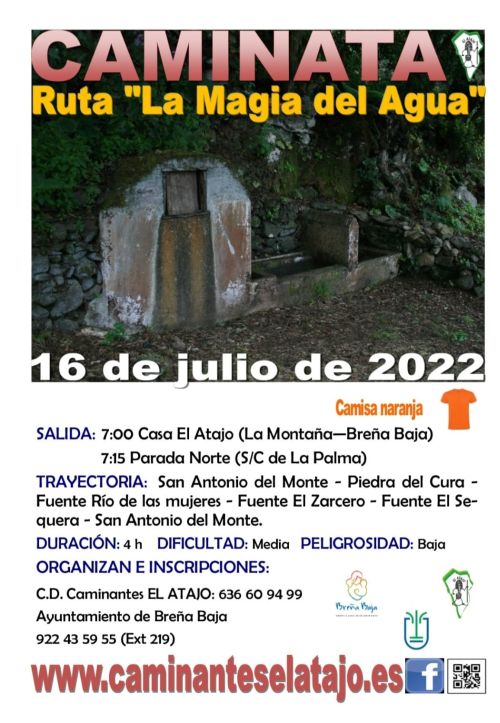 El sábado 16 de Julio, el C. D. de Caminantes "El Atajo" y la Concejalía de Deportes del Ayuntamiento de Breña Baja organizan, dentro del Programa de Senderismo de Breña Baja, la caminata nº 765: "La Magia del Agua".