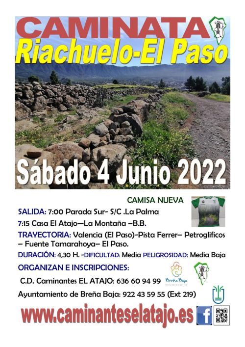 El sábado 4 de junio, el C. D. de Caminantes "El Atajo" y la Concejalía de Deportes del Ayuntamiento de Breña Baja organizan, dentro del Programa de Senderismo de Breña Baja, la caminata nº 760: "Riachuelo - El Paso".
