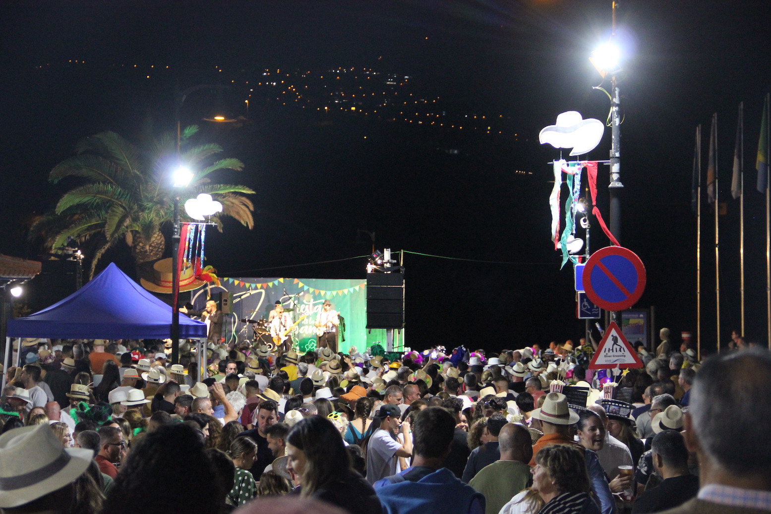 El colofón correspondió a la banda tinerfeña Los Vándalos, cuya recopilación de grandes éxitos del rock en castellano puso a bailar al millar de personas que se congregaron en Los Cancajos ataviados con llamativas pamelas.