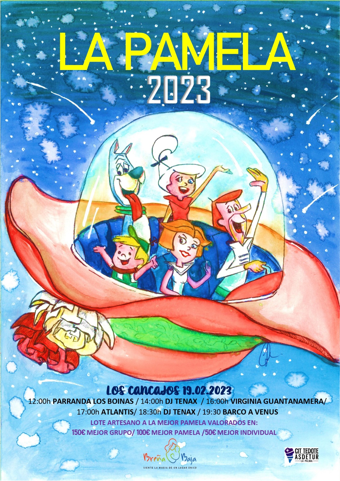 Antes de la irrupción de Barco a Venus, el Ayuntamiento de Breña Baja, en colaboración con el CIT Tedote y Asdetur, entregó los premios a las pamelas más originales con lotes de artesanía local valorados en 50 euros para la mejor pamela individual, que fue a parar a la fantasía “No te vayas, mamá”; 100 para la mejor pareja, para la creación “La última y nos vamos”; y 150 para el mejor grupo, para la fantasía “Chacho, chacho, el correcaminos”.