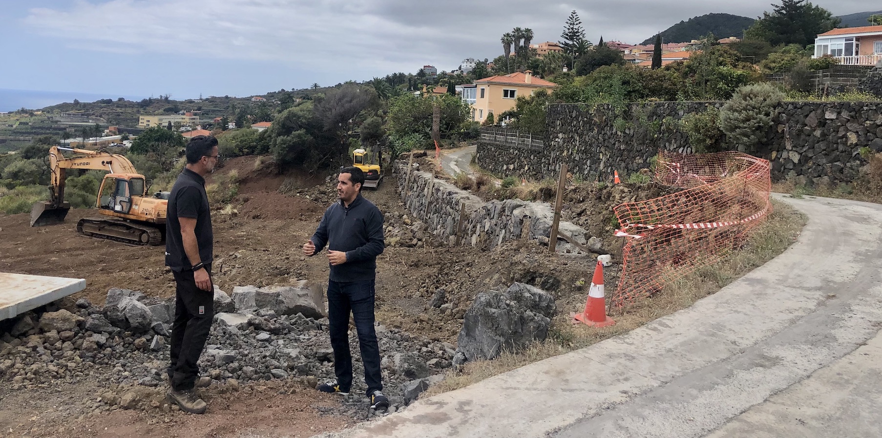 La obras de ampliación y acondicionamiento en el acceso al Parador de Turismo de La Palma, próximo al núcleo de San José, a través del Camino de la Ventrecha continúan a buen ritmo, tal y como ha atestiguado una reciente visita del alcalde Borja Pérez.